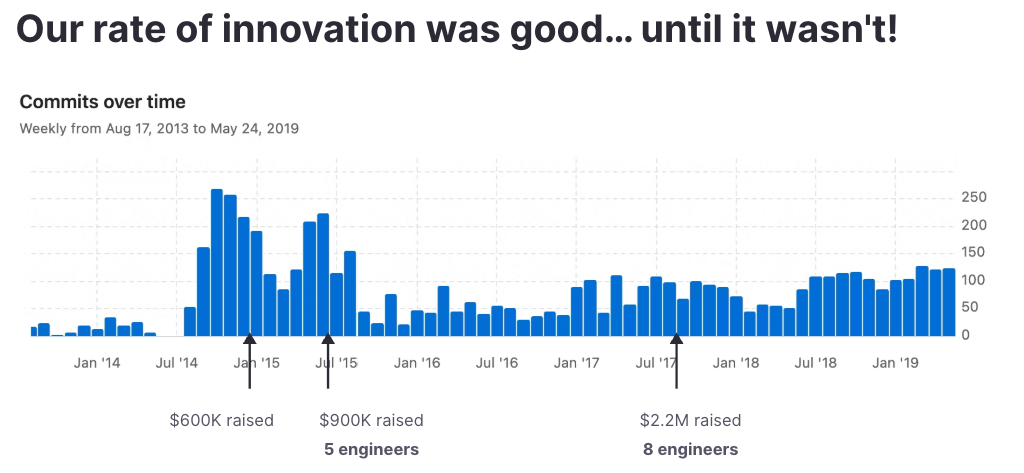 Back in 2014 and 2015, things were simple. We raised a bit of money, shipped fast, and found customers who loved what we were building. With just a handful of engineers, progress was visible every week. Commits were flying, and every release felt like a win.